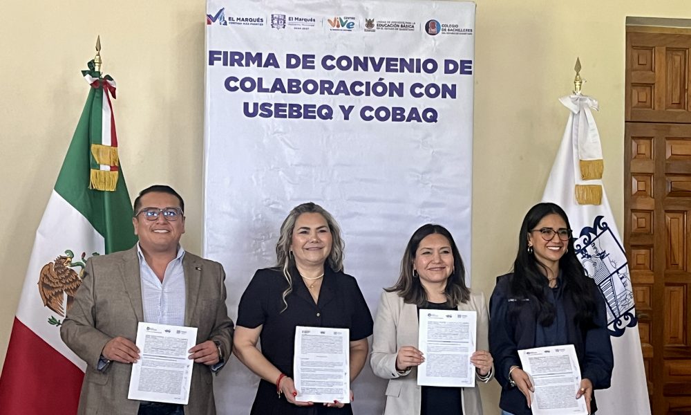 La coordinadora general de la Unidad de Servicios para la Educación Básica en el Estado de Querétaro (USEBEQ), Irene Quintanar Mejía; la coordinadora de gabinete del...