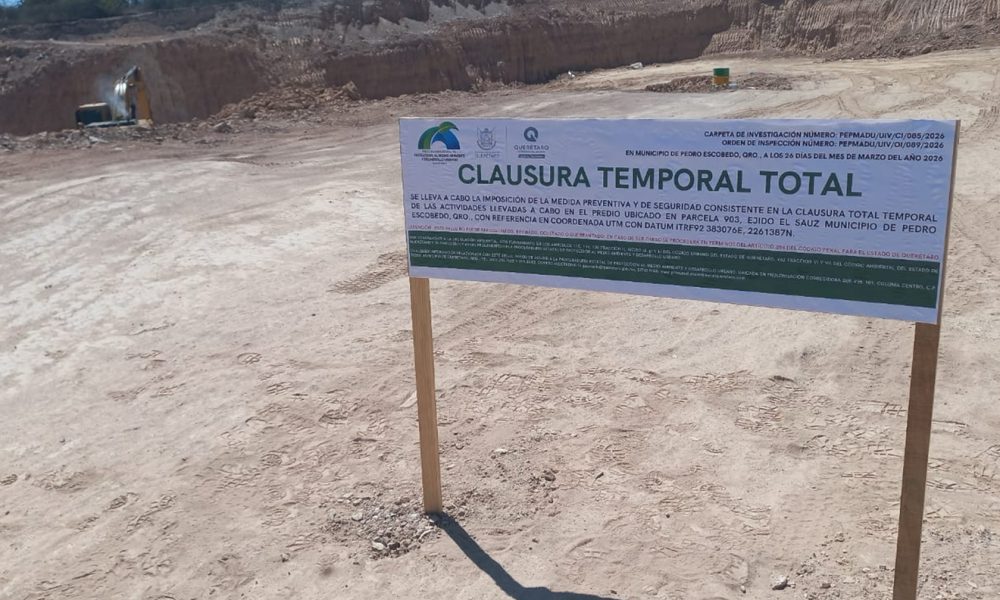 La Procuraduría Estatal de Protección al Medio Ambiente y Desarrollo Urbano clausuró de manera total temporal un banco de materiales en el ejido El Sauz, en...