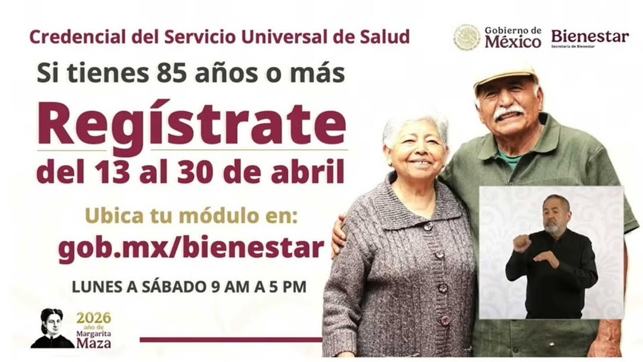El proceso de credencialización para el Servicio Universal de Salud iniciará con los adultos mayores de 85 años y más a partir del 13 y al 30 de abril, informó la secretaria de Bienestar, Ariadna Montiel, quien dio a conocer el calendario conforme se realizará este proceso, cuya primera etapa de intercambio de servicios iniciará el 1 de enero de 2027.