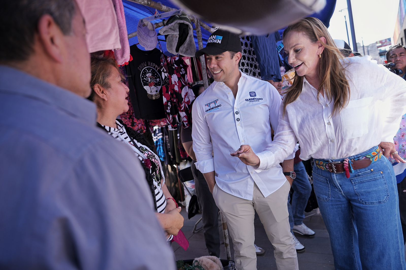 Durante el recorrido fue acompañado por: el líder del Tianguis 5 de febrero, Benito Sánchez López; el secretario de Desarrollo Social, Juan José Ojeda Dorantes; la diputada federal, Ma. Lorena García Alcocer; y el regidor, Bruno Casalini Castellanos.